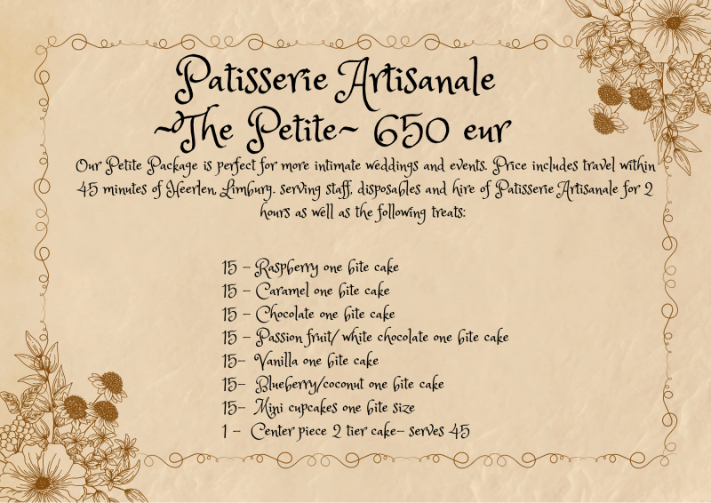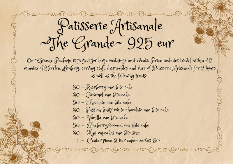 Patisserie Artisanale takes care of the smallest details, so you can focus on enjoying your special day. Let e provide the sweet finishing touch that your wedding or event deserves.